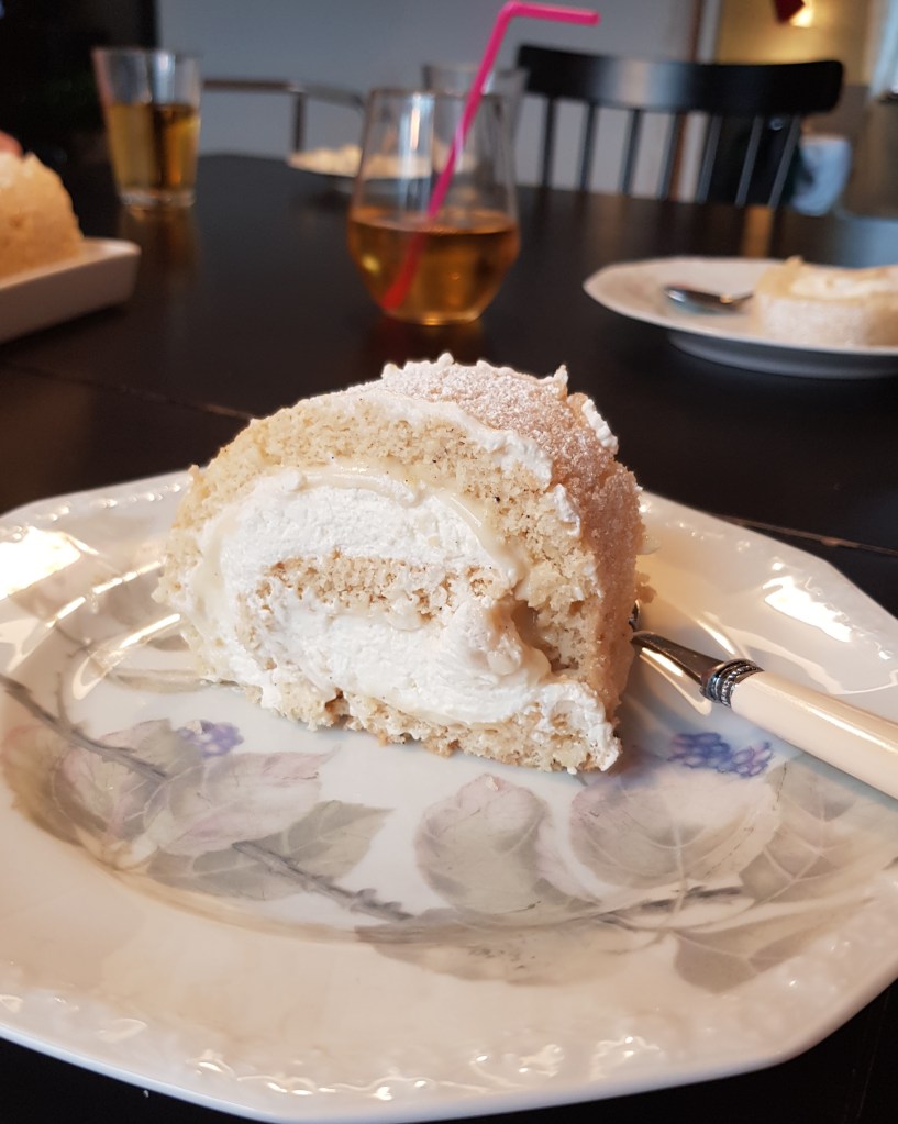 En rulltårta med semmelfyllning fick det bli till fikat idag. Har man bara lite vaniljkräm färdigt så går den superfort att göra.