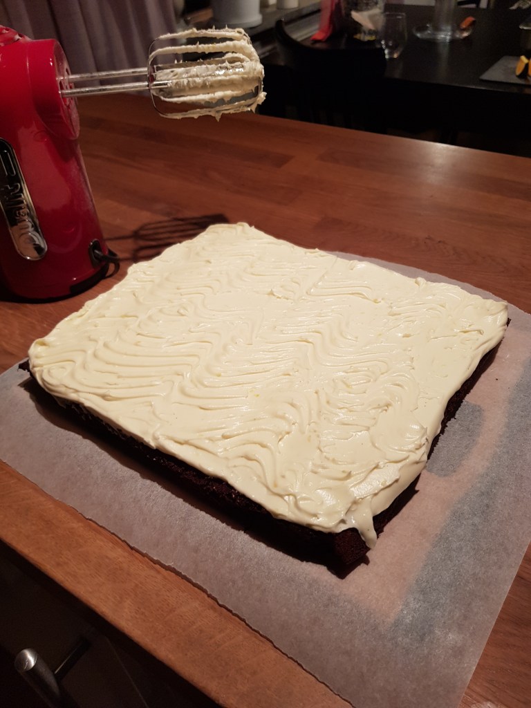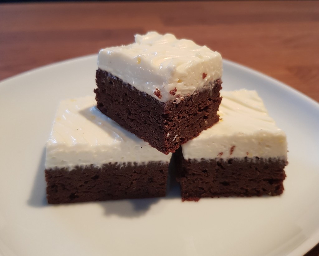 Gjorde en variant med citronfrosting ovanpå…. härlig chokladbotten med en syrlig topp… oslagbart 🙂
