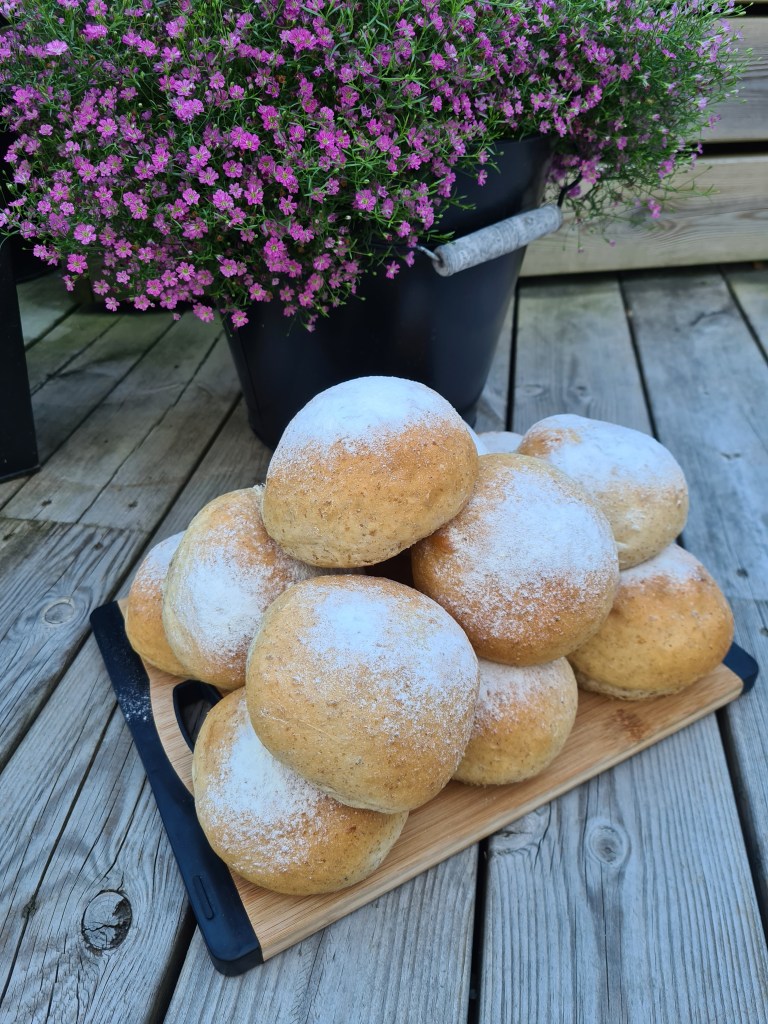Nu har vi ätit köpt bröd ett bra tag och jag är så trött på det…. även om man inte är så himla sugen på att ställa sig och baka när det är 30 grader varmt ute så var det såååå värt det när man smakade på resultatet 🙂