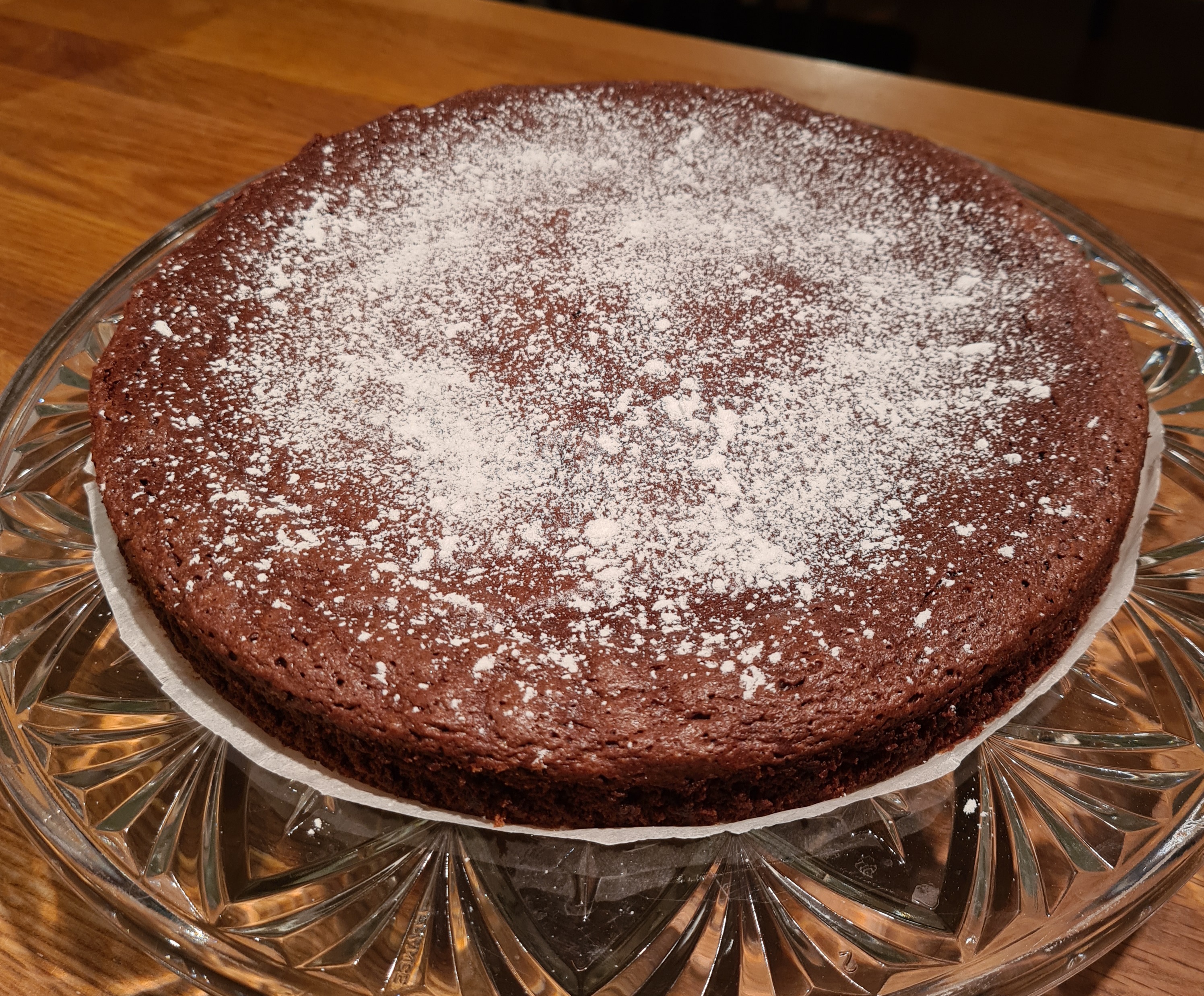 Grädda på 150 grader varmluft i 15-20 minuter, beroende på hur kladdig du vill ha den…