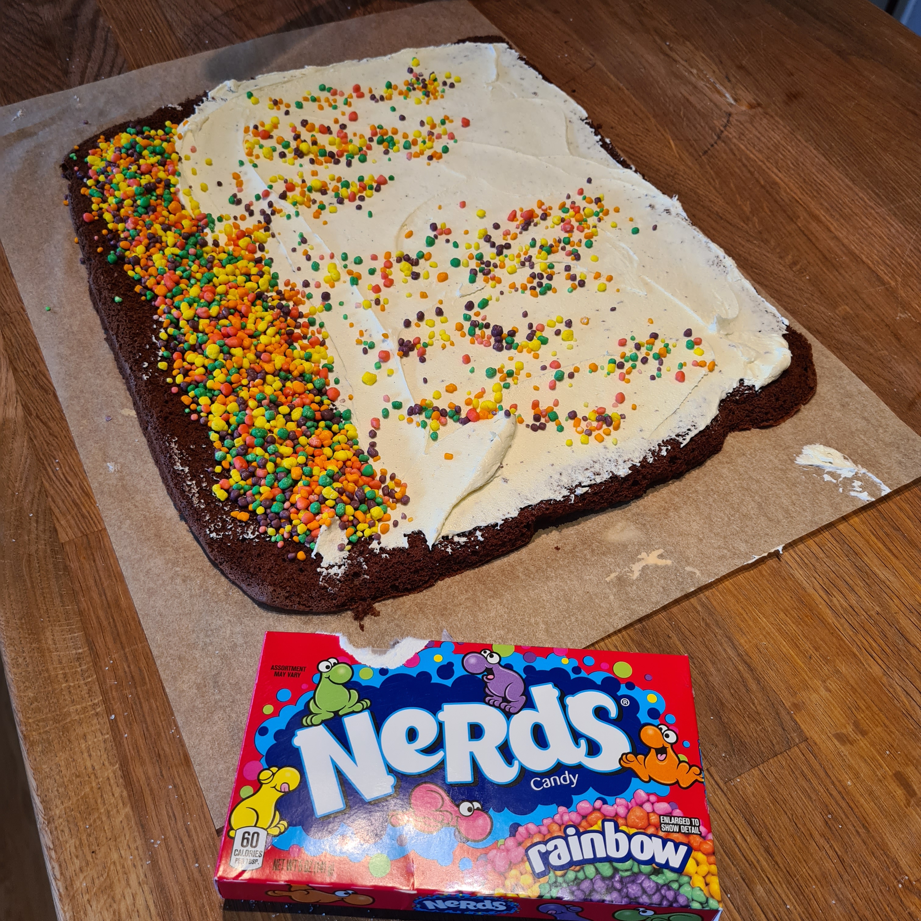 En kalasig rulltårta som barnen älskade… chokladbotten med smörkräm och syrliga godisar. Supergott!!